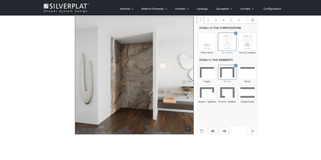 Configuratore 2D che permette di progettare e adattare le docce secondo le esigenze del cliente.